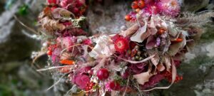 Die Teilnehmenden werden in die Techniken des Straussbindens eingeführt.
