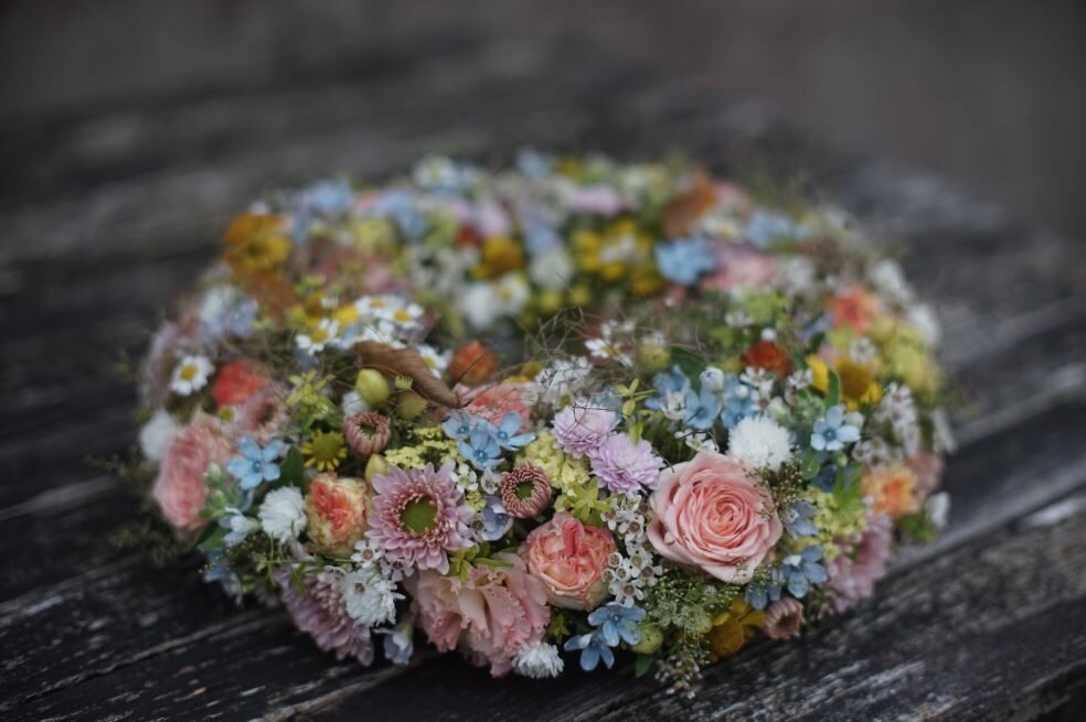 Der Tanz der 1000 Blüten oder wenn Kleine ganz gross rauskommen… Zarte Blütenköpfchen schmiegen sich in diesem Kranz aneinander und strahlen um die Wetter. Mit Geduld und ruhiger Hand stecken…